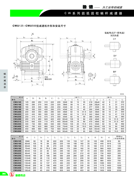 CWU圓弧圓柱蝸桿減速機外形參數-魯德傳動