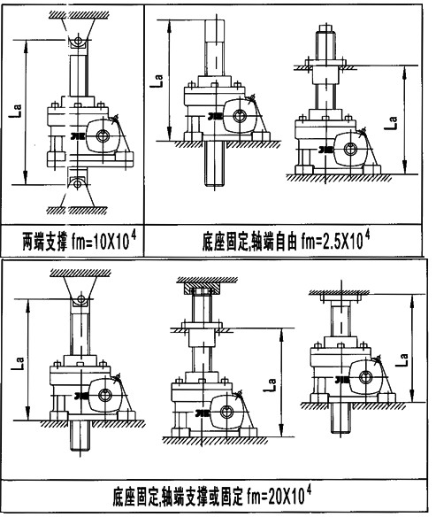 n1--輸入軸回轉轉速(r/min) fn--支撐系數(詳見附表6) Lb--支撐間距離(mm)
