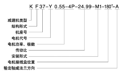 普通軸伸式(省略);軸裝式(A);軸伸法蘭式(F);軸裝法蘭式(AF);軸裝小法蘭式(AZ);軸裝底腳式(AB);軸裝帶防轉臂(AT);普通軸伸式,軸輸入(S);普通軸裝式,軸輸入(AS);軸伸法蘭式,軸輸入(FS);軸裝法蘭式,軸輸入(AFS)。
