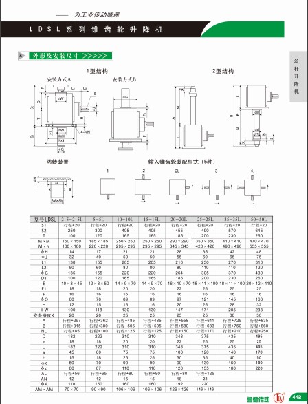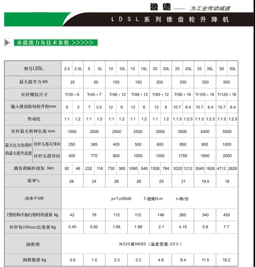 LDSL錐齒輪絲桿升降機技術參數-魯德傳動