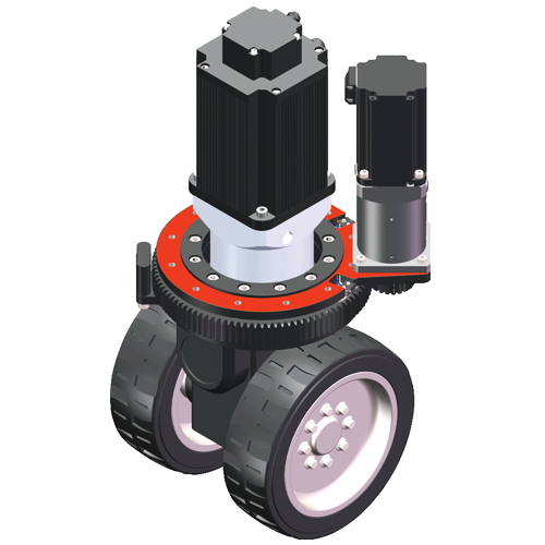 立式舵輪含驅動機構及速度反饋、轉向機構及其位置反饋、限位裝置、制動機構等,高度集成的機電一體化產品。通過驅動控制,可以精 確控制舵輪的行走速度和方向。立式舵輪適用于室外應用,其機構特性可實現涉水行走,且具備優 秀的通過性和爬坡越障能力。