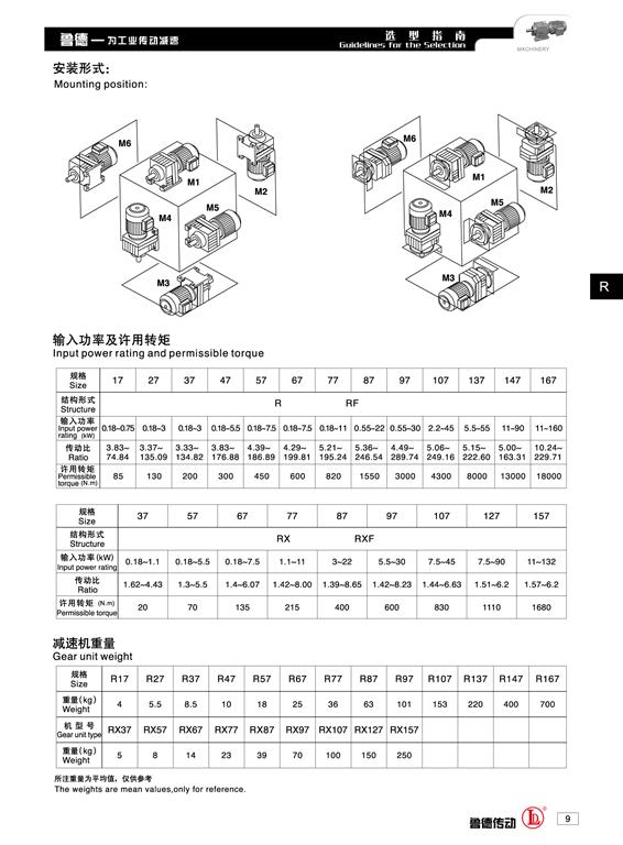 速比范圍:R基本型3.33~289.74,RX型1.3~8.65,R/R組合型可達到27001