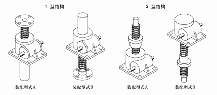 1型結構型式的兩種裝配型式:A型:螺桿工作端在上;B型:螺桿工作端在下。