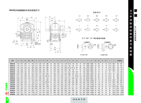 WH系列圓弧齒圓柱蝸桿減速機輸入功率范圍在0.4~163kw之間;輸出扭矩在11~2600kgf.m之間,輸入軸轉速一般不大于1500轉/分;工作環境溫度為-40°C~45°C;當工作環境溫度低于0°C時,啟動前潤滑油_加溫到0°C以上。